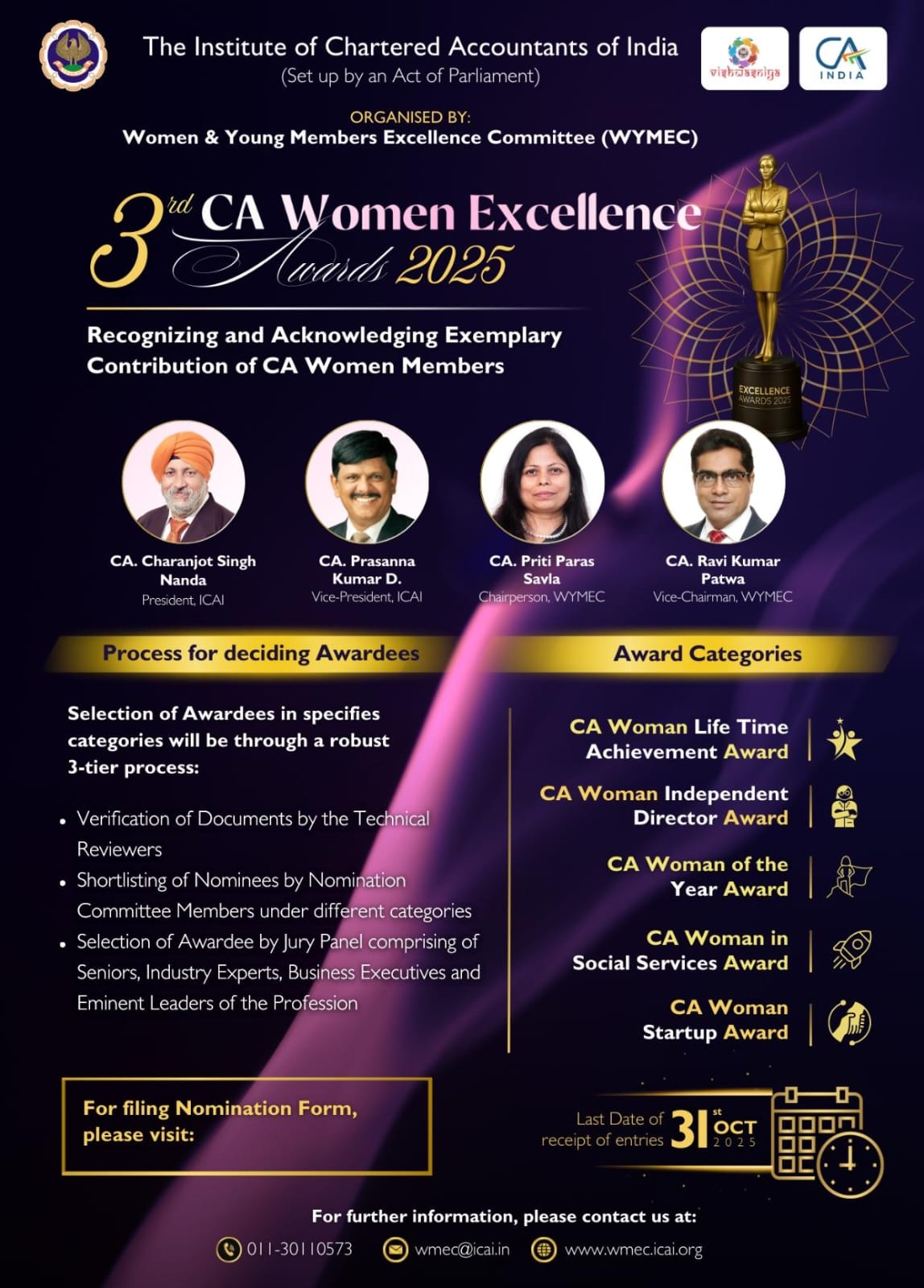 Women & Young Members Excellence Committee (WYMEC) of ICAI3rd CA Women Excellence Awards